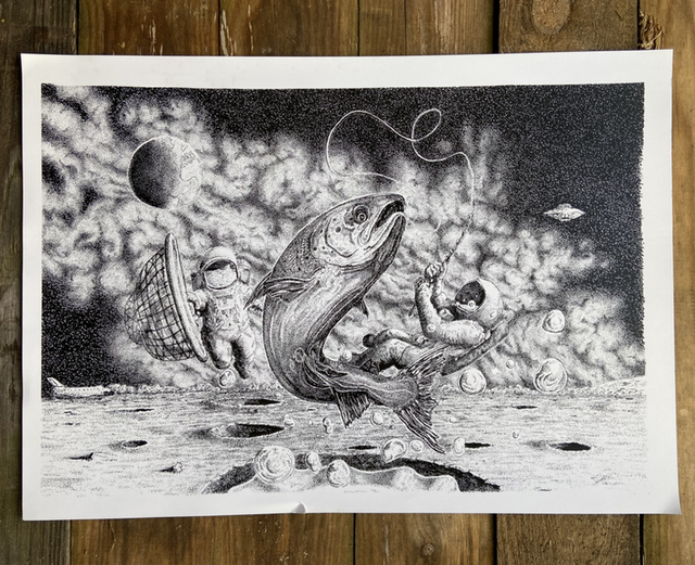 Astronauts fishing on the moon